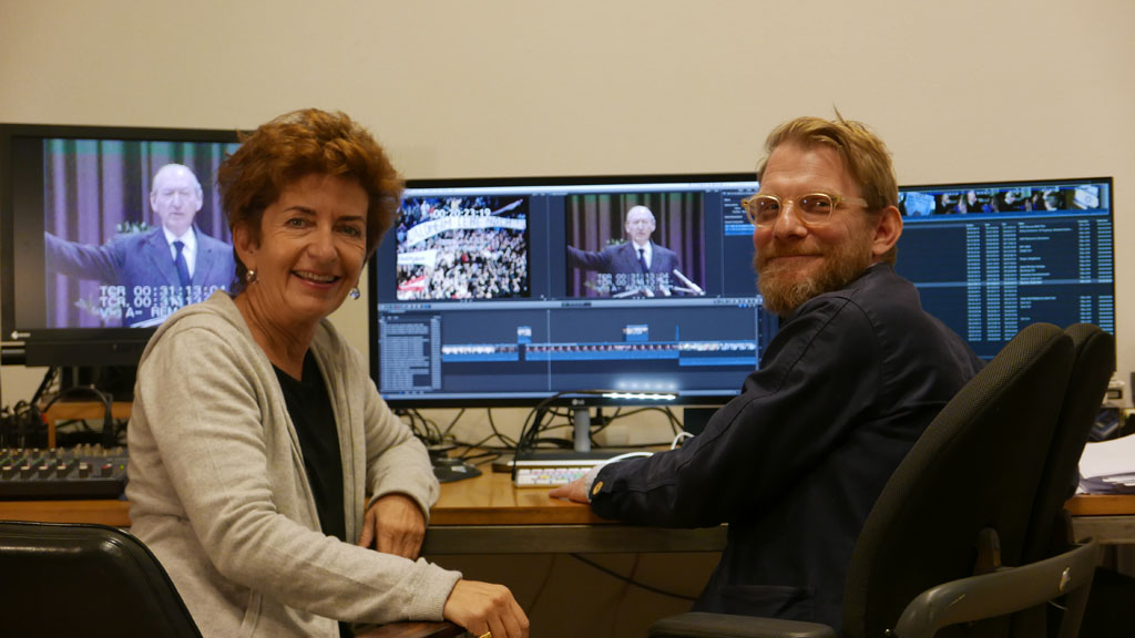 Als ich im Frühjahr 2016 mit der Materialsuche begann, verwirrte mich sehr schnell die für mich neue Arbeit mit bereits existierendem Material, das noch dazu aus TV-Anstalten stammt. Bei selbst gedrehtem Material ist es schwierig, sich von der Drehsituation und den eigenen Erinnerungen zu lösen, um eine distanzierte Haltung zu finden. (Auch darum benötigt man einen Cutter, der nicht dabei war!) Archivmaterial und besonders TV-Material lässt vorerst mal kalt. Kalte Erinnerungsschnipsel, die seit der digitalen Revolution immer kürzer werden: Text-Messages statt Briefen, Clips statt Filmstreifen. Ich benötige Gespräche mit Archivaren und den Geruch der realen Orte, wo das Material zu sichten ist, um eine Beziehung zu diesem herzustellen. Und ich muss mich davor schützen, nicht in der Fülle von Banalitäten unterzugehen, mit denen das Fernsehen seine Sendezeit füllt, d.h. rasch entscheiden, was in den Kübel des Vergessens fallen soll, wie zum Beispiel das heute nur beschränkt interessante Hickhack zwischen ÖVP und SPÖ, wann und durch wen die Mitgliedschaft Waldheims bei der SA an die Öffentlichkeit drang. Dreht man selbst, dann macht man sich sein eigenes Bild von der Welt. Das gefundene Material zeigt ein Bild, das jemand anderer gemacht hat und wieder jemand anderer aufbewahrt hat, indem er es in eine Reportage oder einen Nachrichten-Beitrag einfügte. Wäre es eine bestimmte Person, also das Material eines bestimmten Filmers, ob Profi oder Amateur, so könnte ich seinen subjektiven Blick suchen und interpretieren. Hier jedoch handelt es sich um viele, zum Teil unmotivierte, gelangweilte, zum Teil suchende, ernsthafte Kameraleute und Journalisten, die den verschiedenen TV-Cuttern ihr Material lieferten. Und schließlich musste der gestaltete Beitrag in die Linie des Senders passen, in Österreich also in diejenige des staatlichen ORF. Was mir begegnet, ist der Standpunkt und Blick des Mediums TV in seiner nationalen Ausprägung.